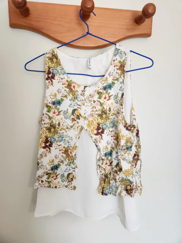 Blusa floral blanca sin mangas