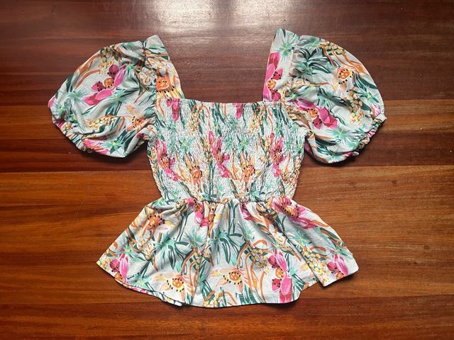 Blusa floral con mangas abullonadas
