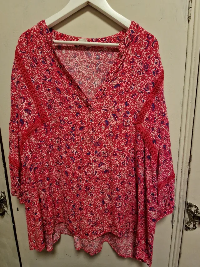 Blusa fucsia estampada talla grande