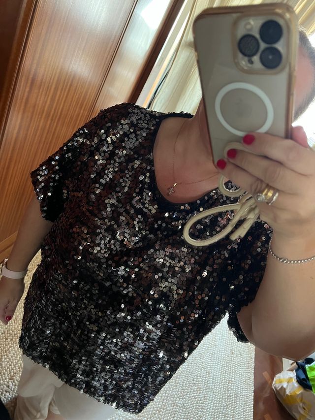 Detalles del productoEspectacular blusa negra con lentejuelas