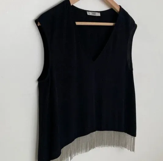 Blusa Mango negra con flecos