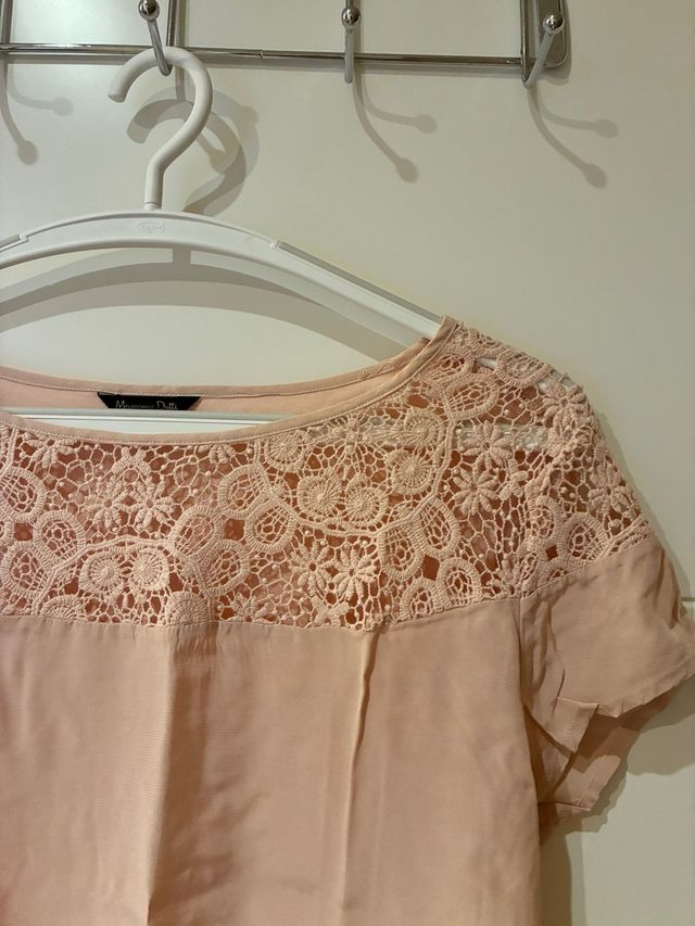 Blusa Massimo Dutti Beige/Rosa Encaje Talla M