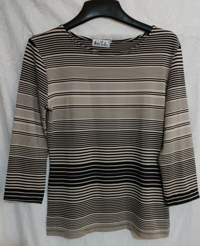 Blusa Michel Bustos ,Beige Rayas Negras Talla M.