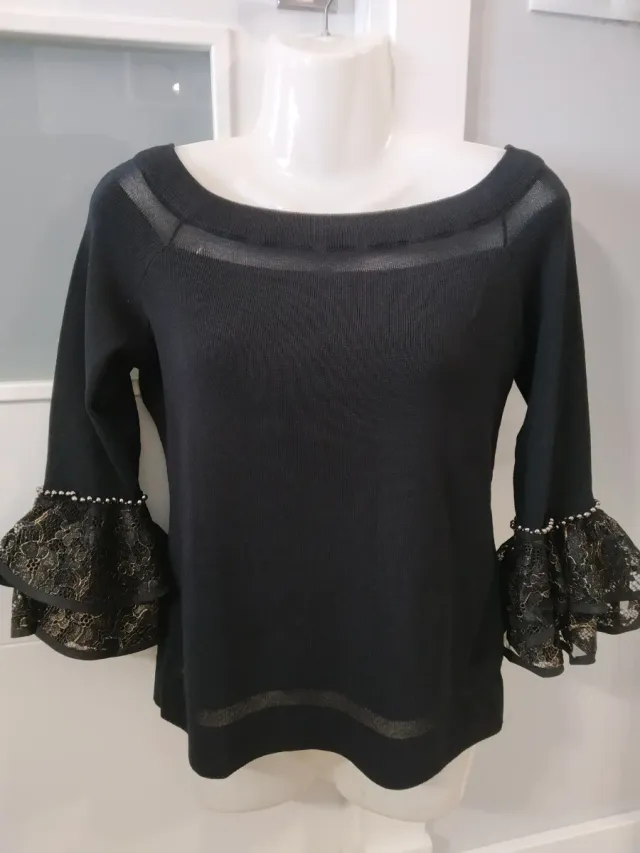 Blusa negra con encaje y perlas