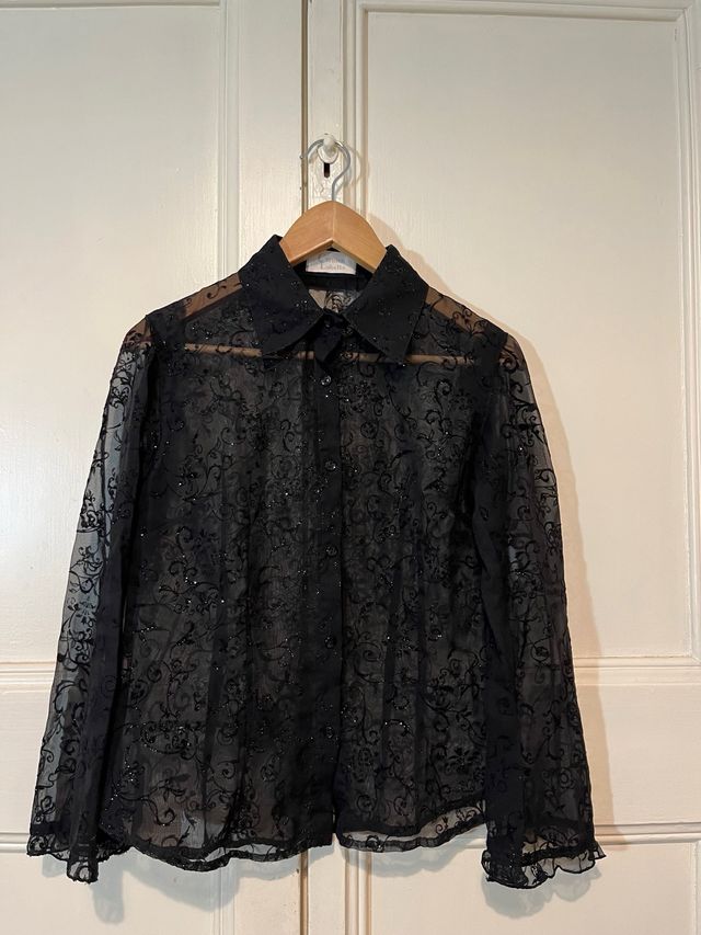 Blusa negra transparente con brillantes