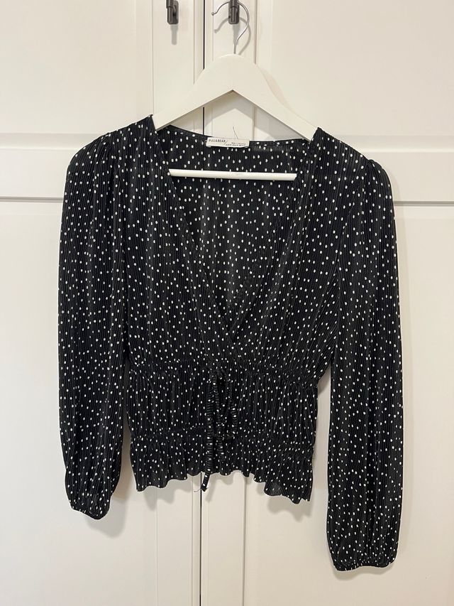 Blusa Pull&Bear lunares escote pico fruncida