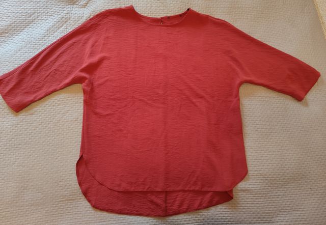 Blusa de mujer de corte holgado, bajo curvo y manga 3/4. En tono coral oscuro. Talla 44 de Primark. Usada una vez, en perfecto estado.