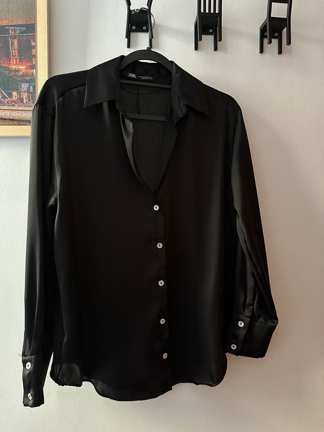 Blusa satinada negra – ZARA – Talla XS – Fluida