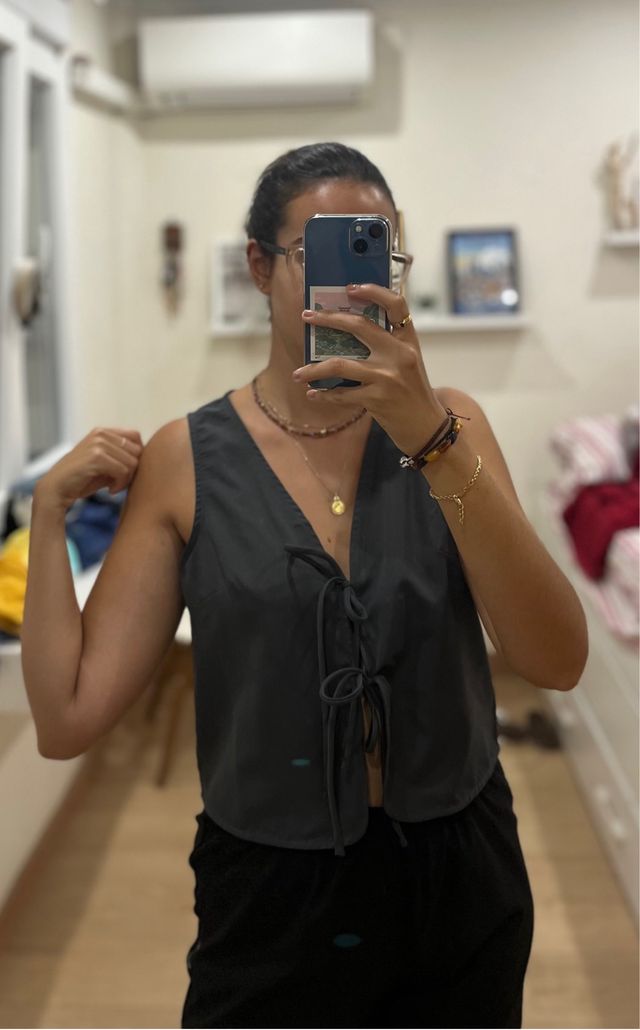 Blusa Shein gris con lazada