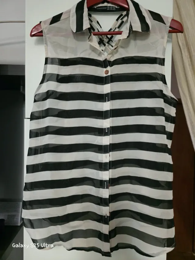Original blusa sin mangas con un diseño de rayas transparente. Talla 42