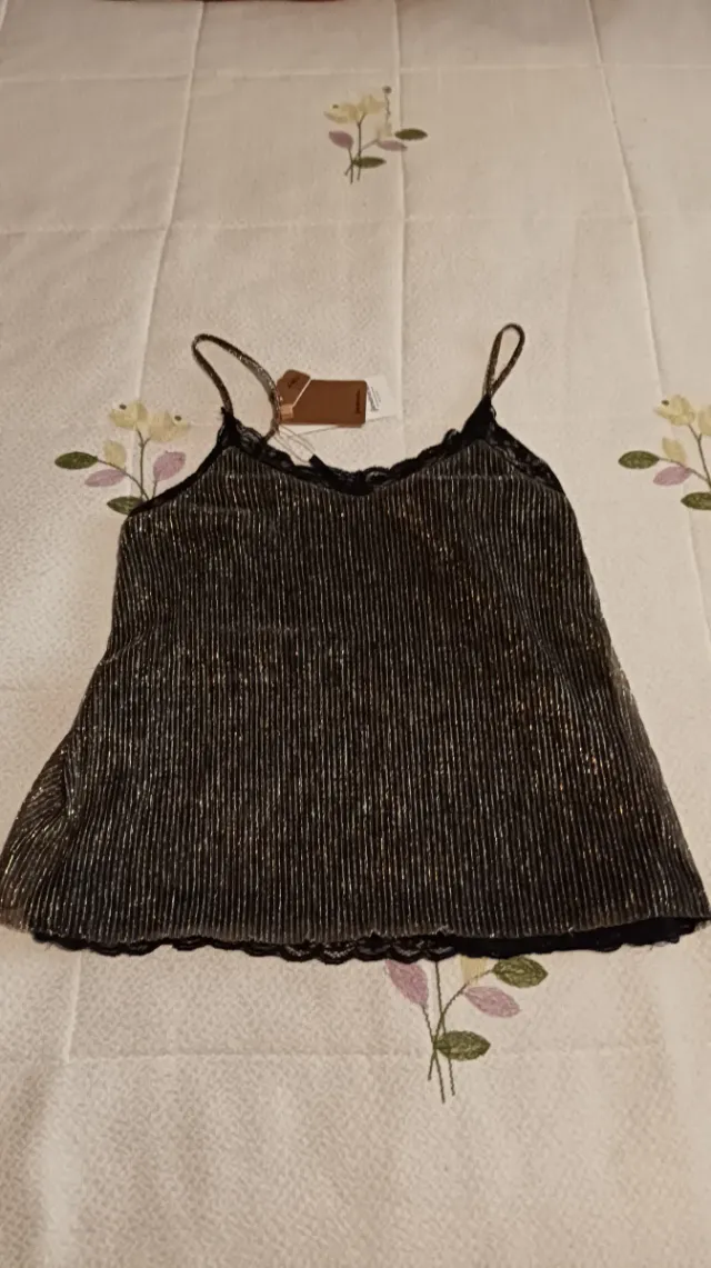 Blusa Stradivarius M dorada y negra