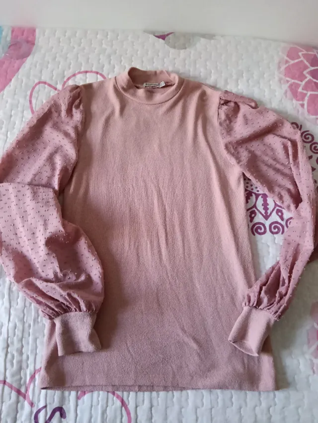 Blusa Stradivarius rosa manga abullonada