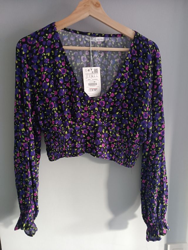 Blusa Top Flores Pull and Bear Talla L