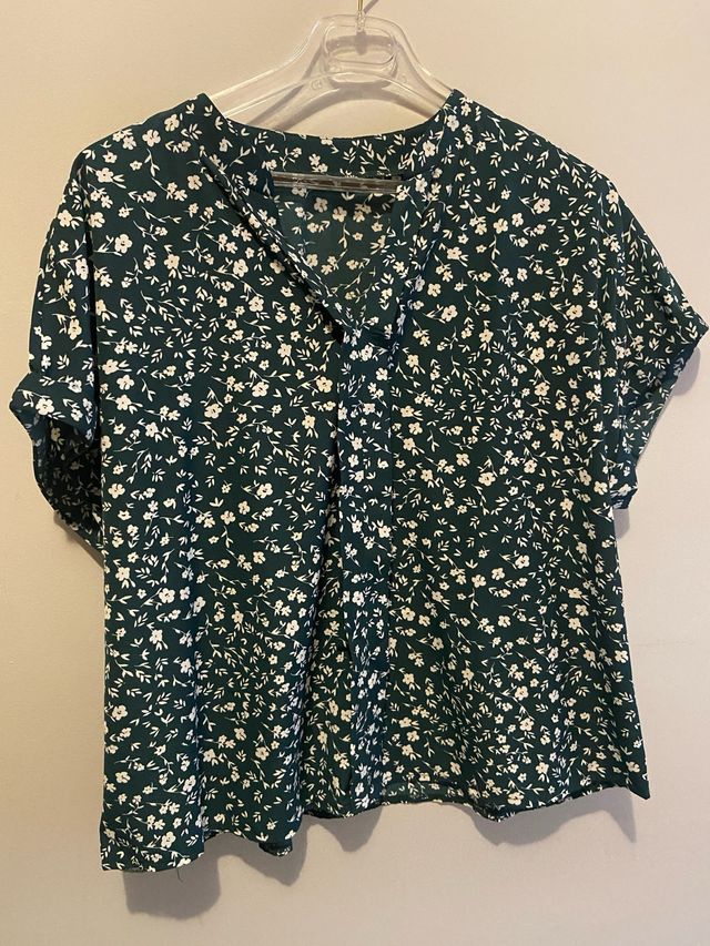 Blusa verde con estampado floral blanco