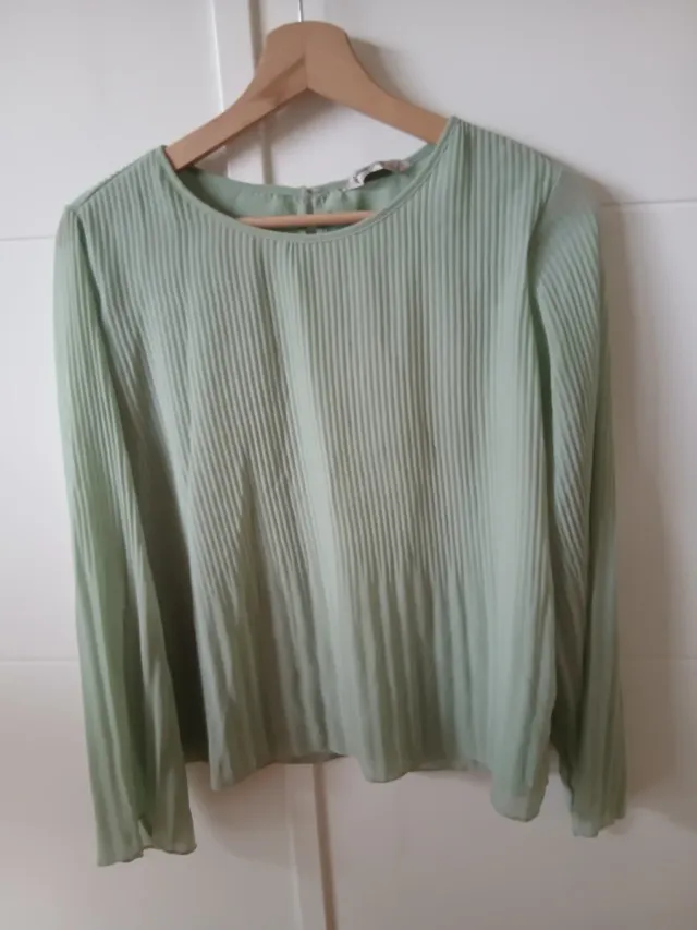 Blusa verde mujer plisada manga larga