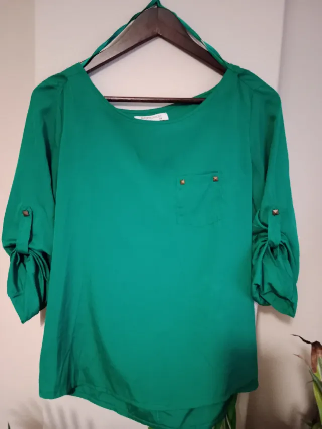 Blusa verde talla M con bolsillo. Blanco