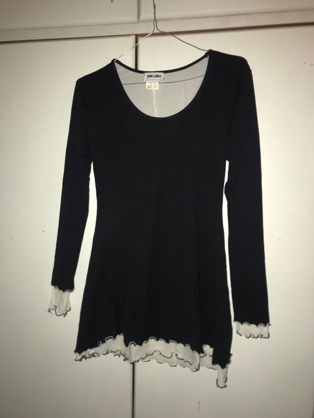 Blusa/Vestido Vintage Solana Negro/Blanco Talla S