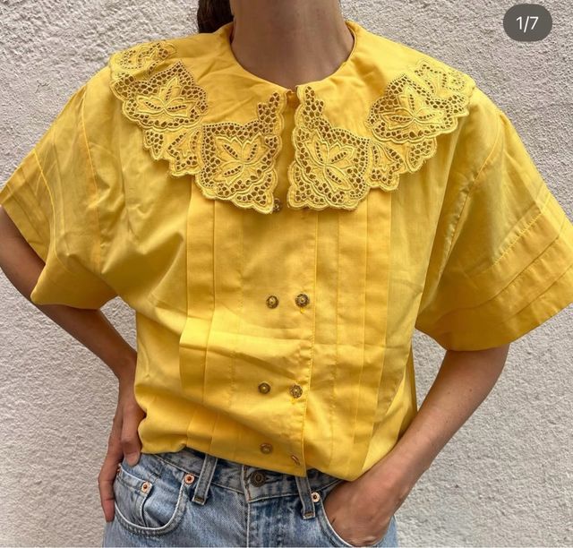 Blusa vintage amarilla con cuello bordado