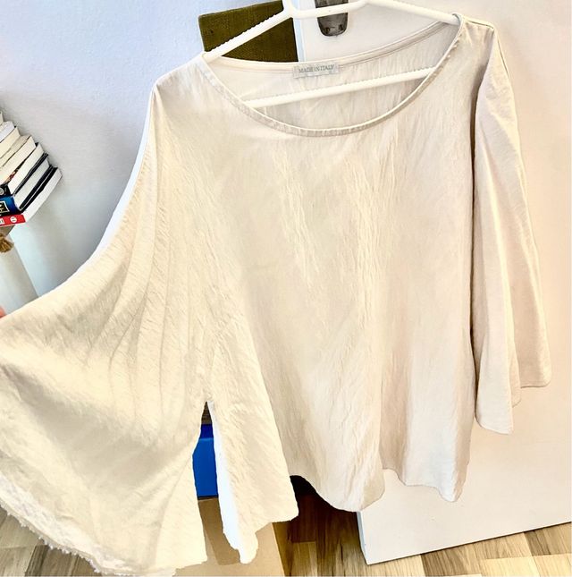Blusa Viscosa Manga Murciélago color crudo claro.