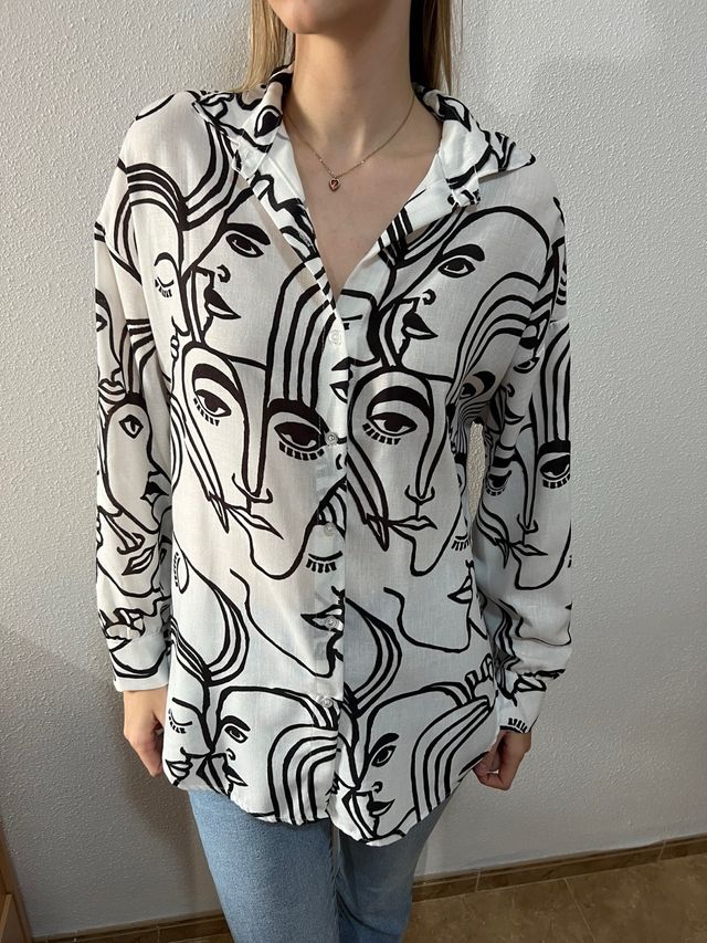 Blusa XL / XXL estampado caras blanco y negro muje