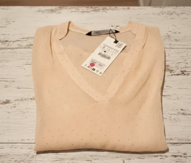 Blusa elegante y vaporosa de Zara, ideal para eventos, cenas o salir de fiesta. Es una prenda ligera con una caída preciosa que aporta un toque sofisticado a cualquier look.