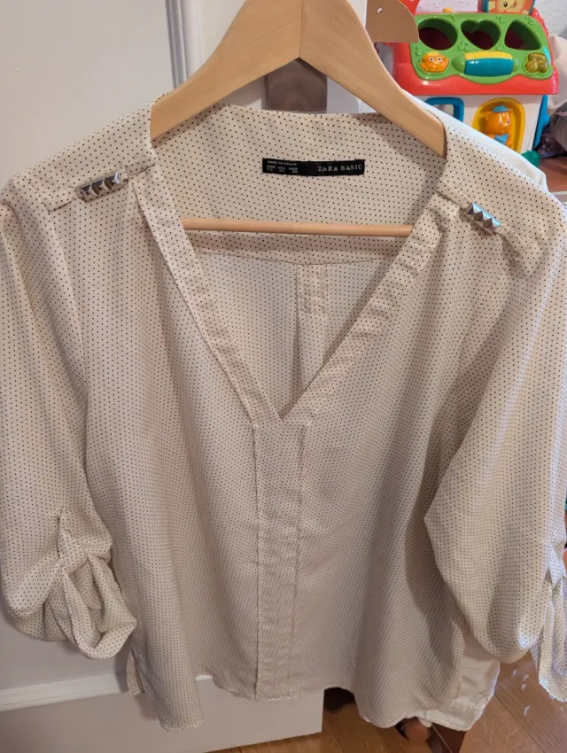 Blusa Zara Beige con Puntos Negros Talla XL