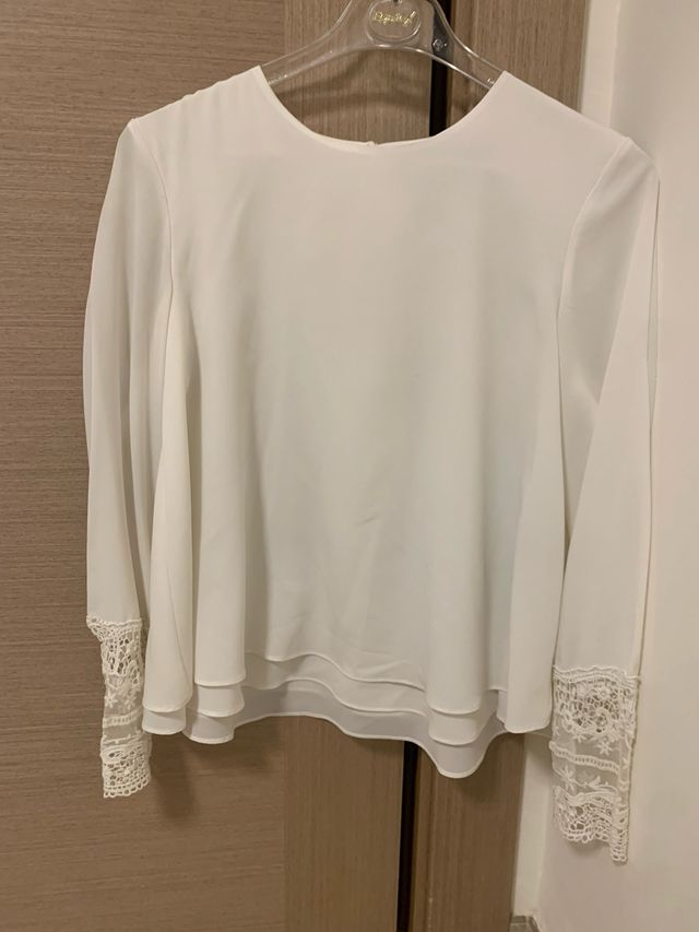 Blusa Zara Blanca Manga Larga Encaje T.XS