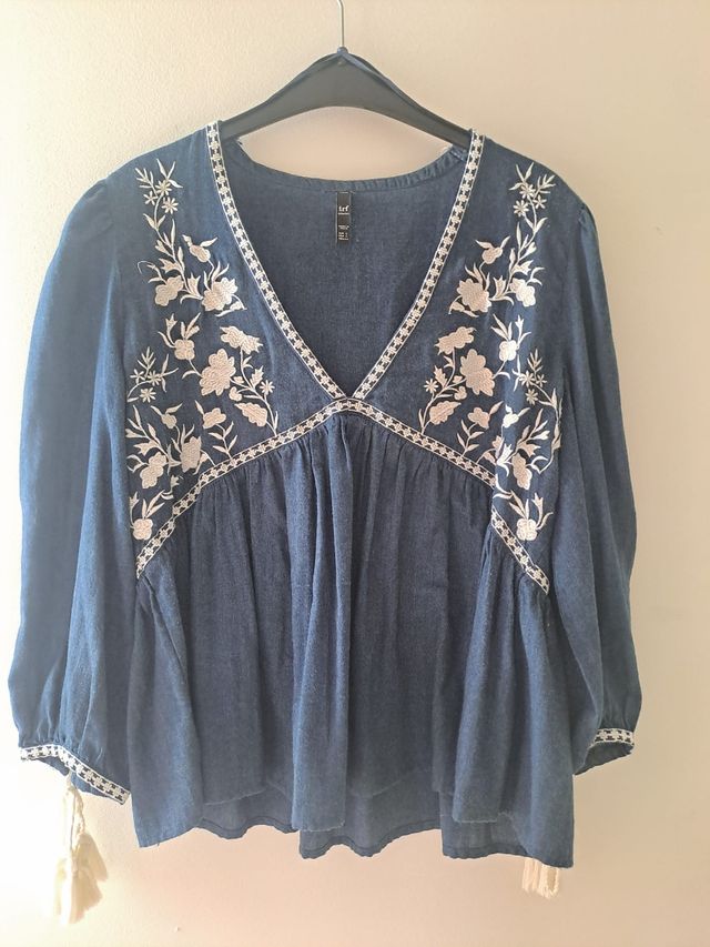 Blusa Zara bordada azul.