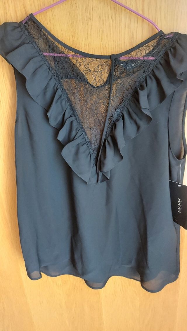 Blusa Zara con encaje y volante