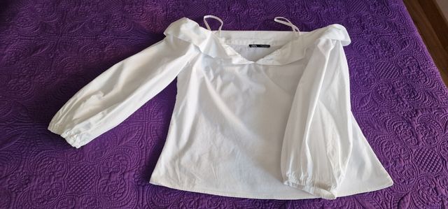 Blusa Zara Hombros Descubiertos Algodón Blanca