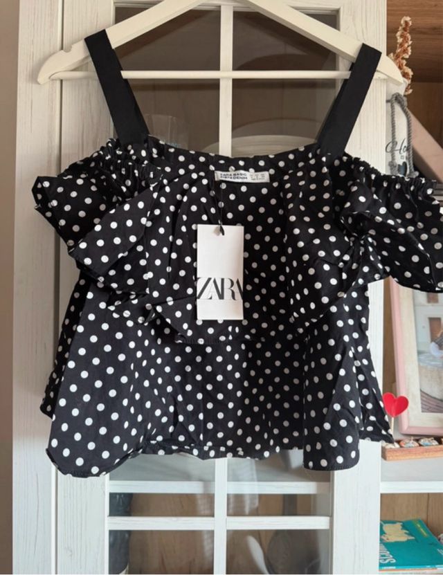 Blusa Zara lunares volantes hombros descubiertos