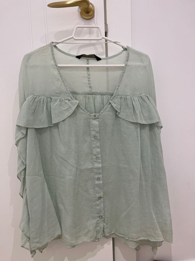Blusa Zara verde con volantes