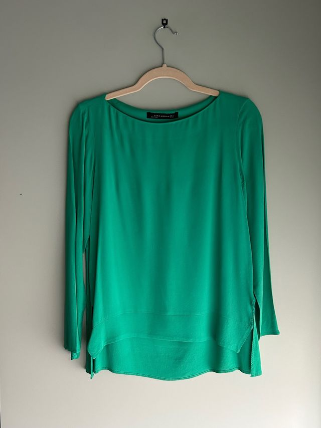 Blusa Zara verde manga larga