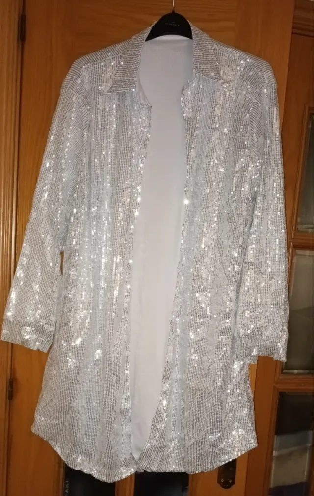 Blusón/Camisa Lentejuelas Plateado Talla 3XL~50