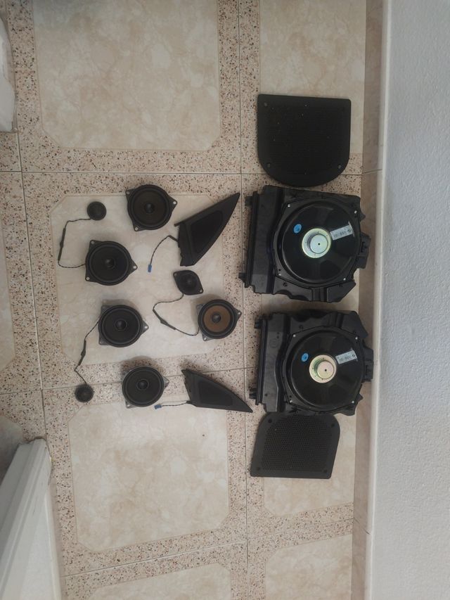 Detalles del productoKit de altavoces Hi-Fi en perfecto estado para gt f01 5 altavoces 5 tweets con las esquinas para su reequipacion y dos subwoofer con su cajon y rejillas .pero valen para mas modelos BMW no se vende nada por separado y no es negociable