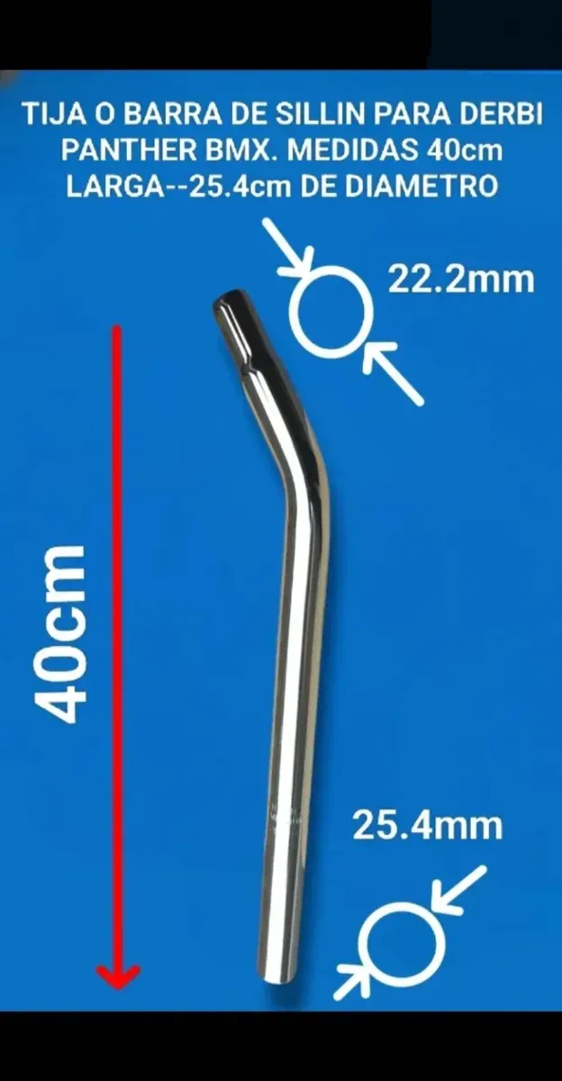 Detalles del productoTija o barra de sillín para bicicleta BMX Derbi Panther.