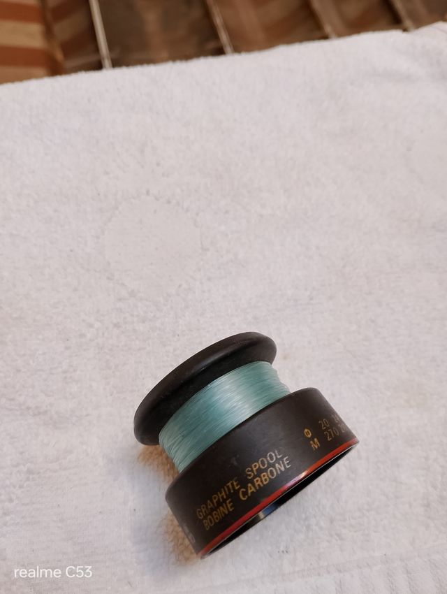 Bobina de carrete de pesca vintage en color verde agua. Está en buen estado. - Bobina de grafito. - Mecanismo "un solo toque" - Diseño clásico.
