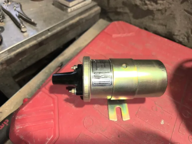 Bobina de encendido para Seat 600. Pieza metálica con soporte. - Conexiones para cables. - Terminal de salida para la pipa.