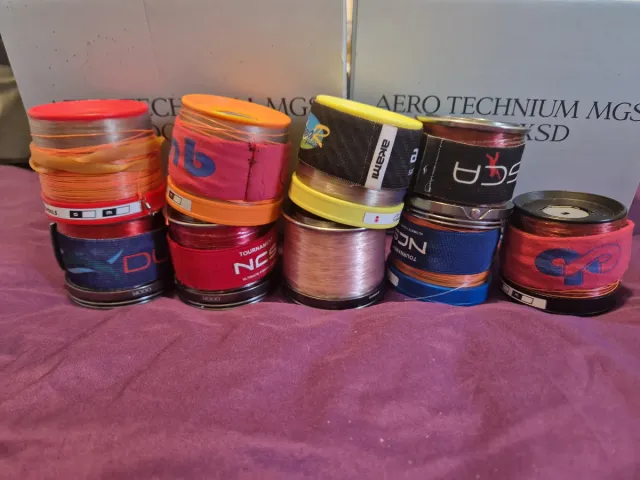 - Bobinas de repuesto 4 Originales (50€ cada una ) y 5 MV Spools son cónicas type 4 y 5 (30€ cada una) todas de 45mm de alto y con hilos Nou cast arena y red
