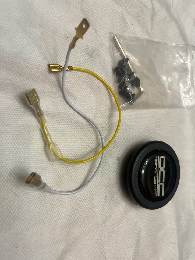 Se vende bocina central para volante OCC Motorsports. Está en buen estado. - Incluye 2 cables y tornillos. - Ideal para personalizar tu vehículo.