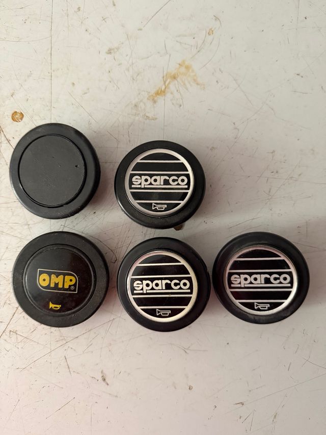 Conjunto de bocinas para volante de coche, con logos de Sparco. SOLO ME QUEDAN 3; - Dos bocinas con logo Sparco. - Una bocina negra sin logo.