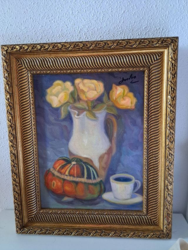 Bodegón, autor Isidro Lienzo 26 ancho x 34 alto Con marco 39 ancho x 47 alto Negociable
