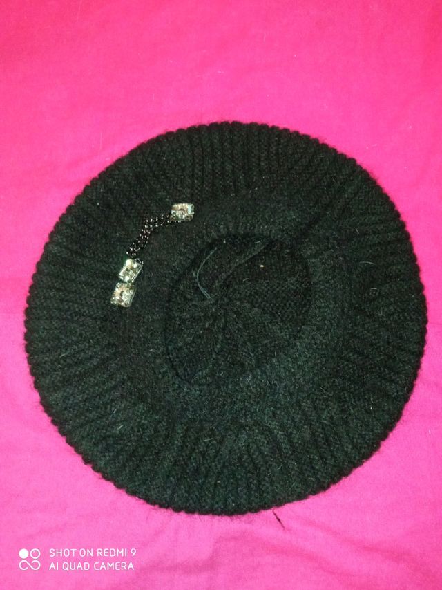 boina negra de lana , nueva sin usar, elástico y muy suave