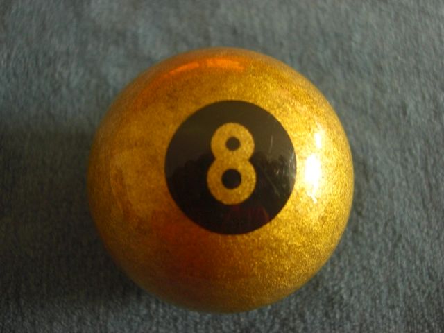 Bola de billar de la marca Aramith con un llamativo acabado dorado y el número 8. - Diseño dorado brillante. - Número 8 en color negro. - Regalo de Navidad.