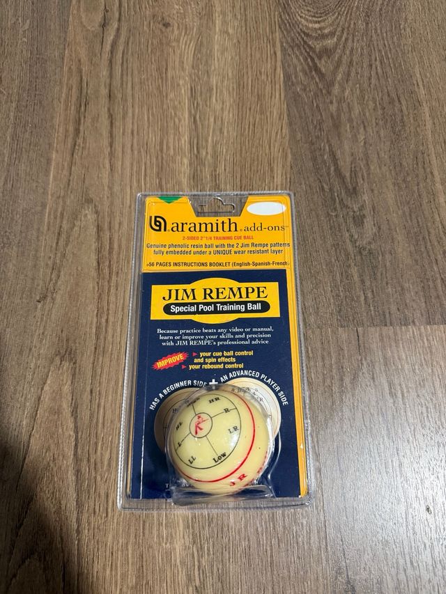 Detalles del productoBola de entrenamiento de billar de la marca Aramith, modelo Jim Rempe.
