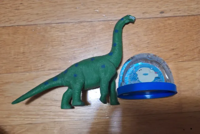 Detalles del productoConjunto de bola de nieve con un pez en su interior y un dinosaurio de goma blando.