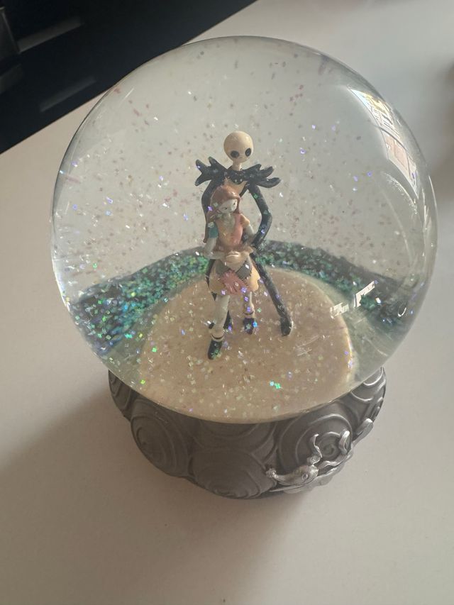 Detalles del productoBola de nieve con Jack y Sally de Pesadilla Antes de Navidad.