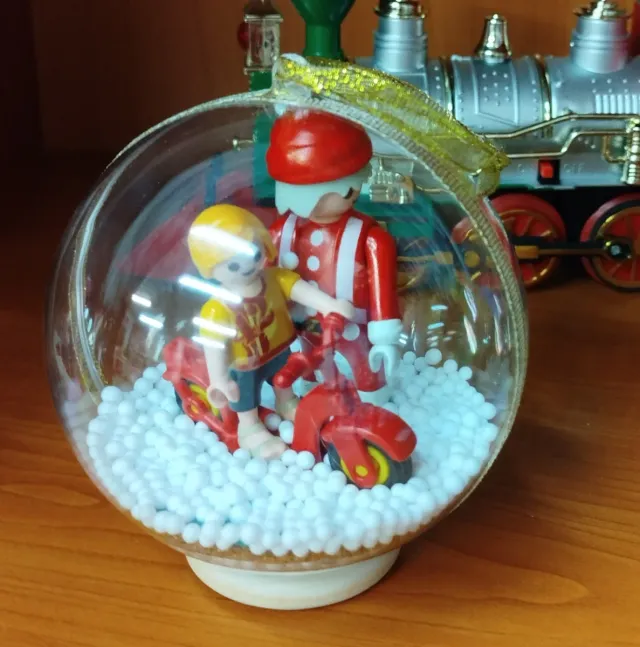 Detalles del productoBola de Navidad decorativa con figuras de Playmobil.