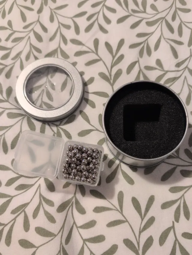 Conjunto de pequeñas bolas metálicas con imán. - Material metálico. - Diseño esférico.