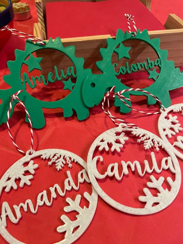 Bolas personalizadas con nombre. Hechas con impresión 3D. 4€ unidad (1). 4,50€ unidad con dos (2) colores. Colores: Blanco, Rojo, Verde. Consultar más colores disponibles.